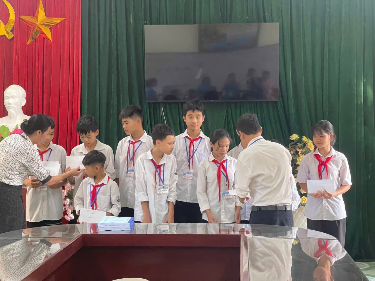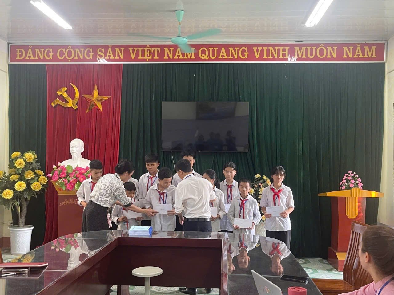 Do hoàn cảnh ở xa, không thể lên trao trực tiếp, chúng tôi đã nhờ Ban Giám hiệu 3 trường trao ngay sáng nay cho các em.
